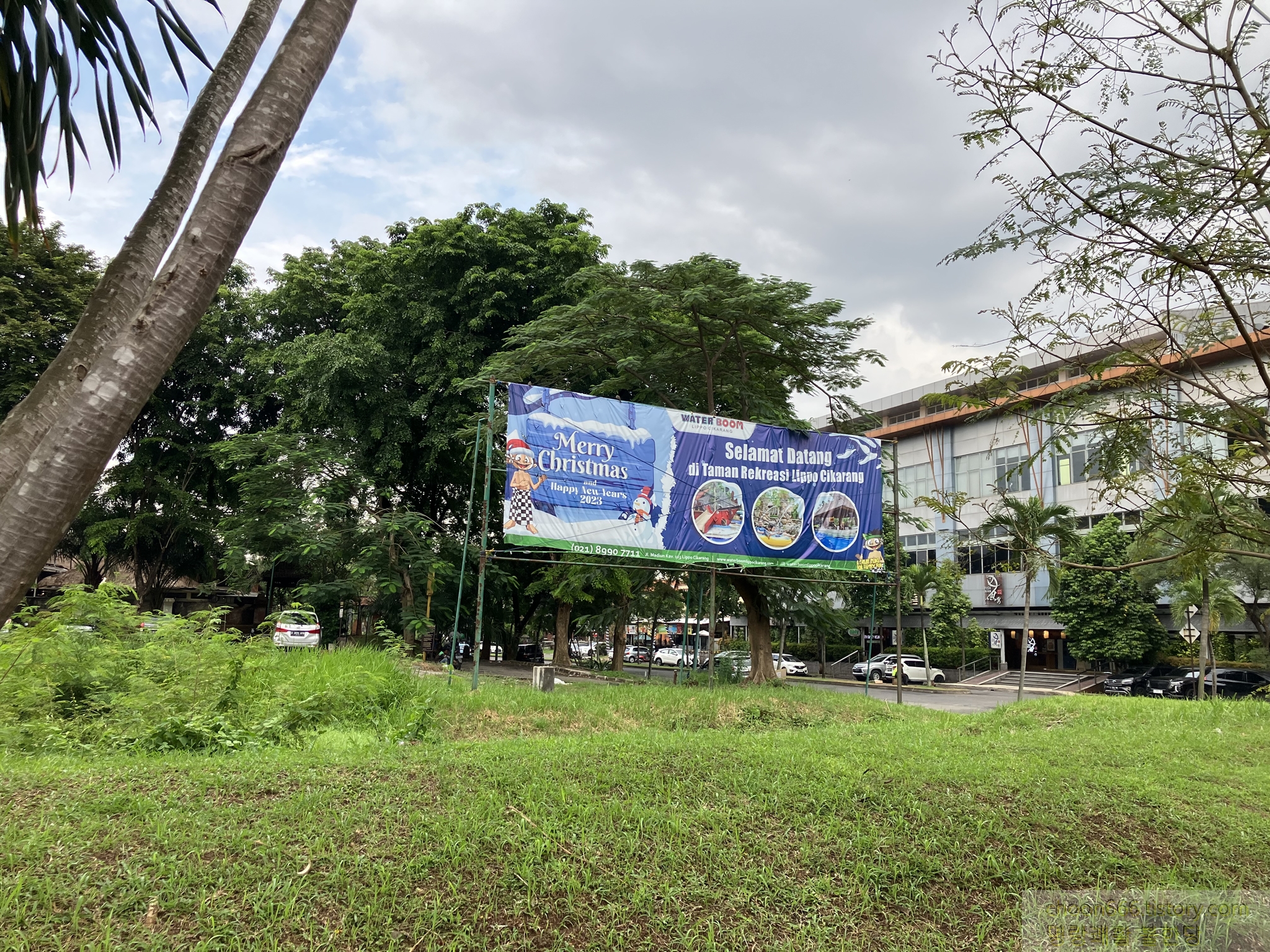워터붐 (워터파크) 크리스마스 행사 홍보 현수막이 아직도 걸려있다.