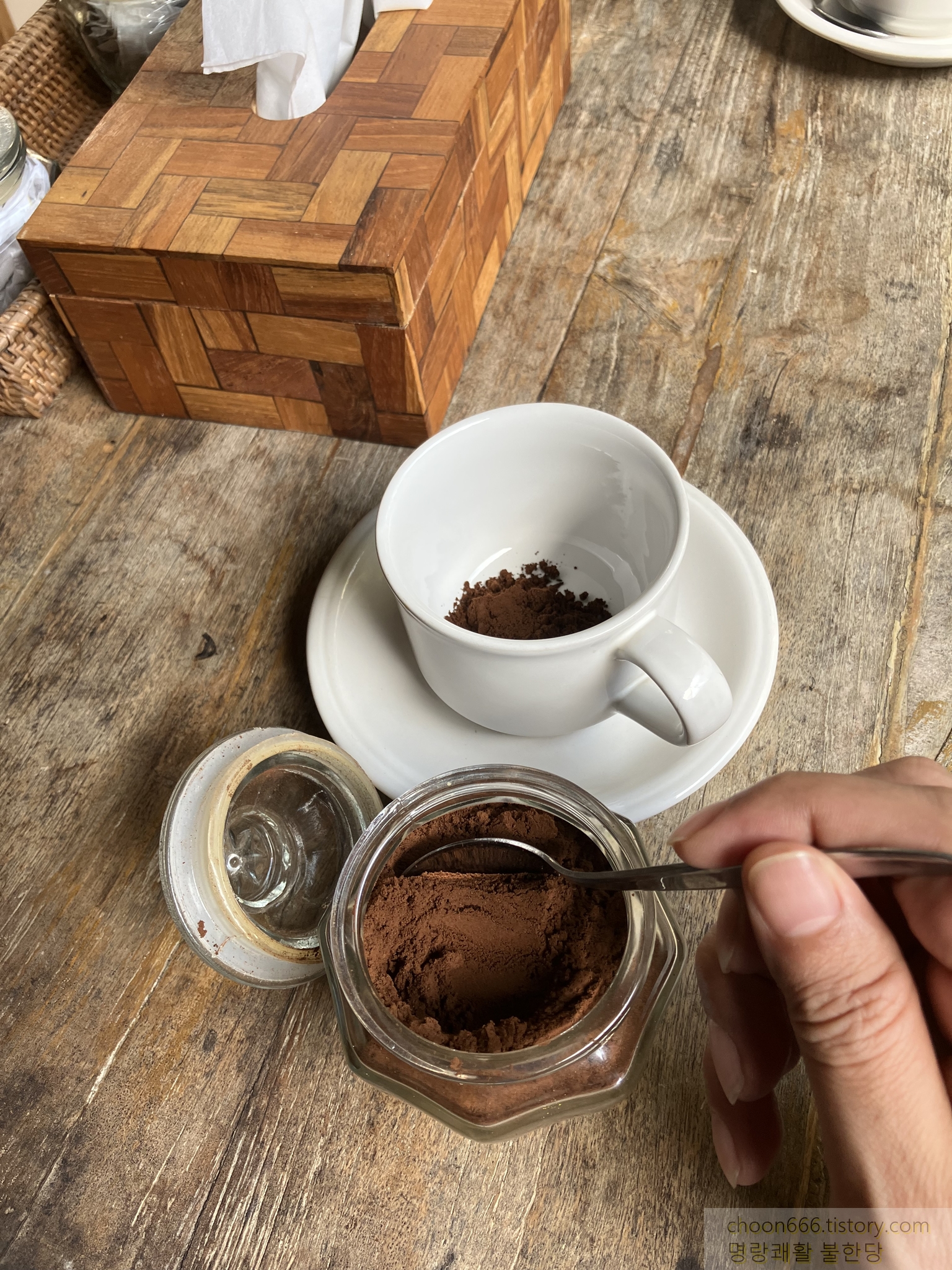 원두 가루인데 거르지 않고 그냥 물에 타는 게 어색할 수도 있겠다.