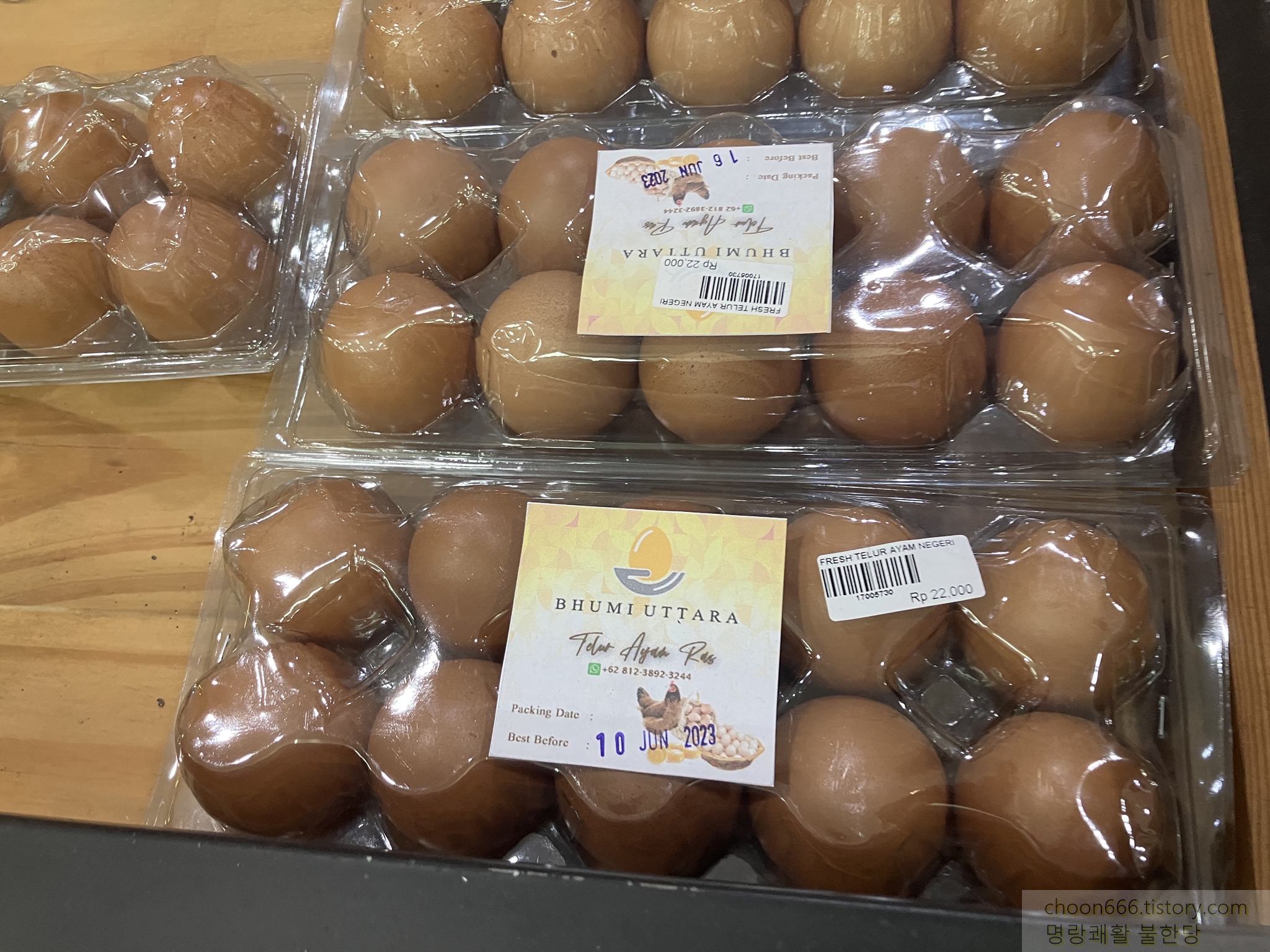팩 포장된 달걀 10개 22,000 루피아.